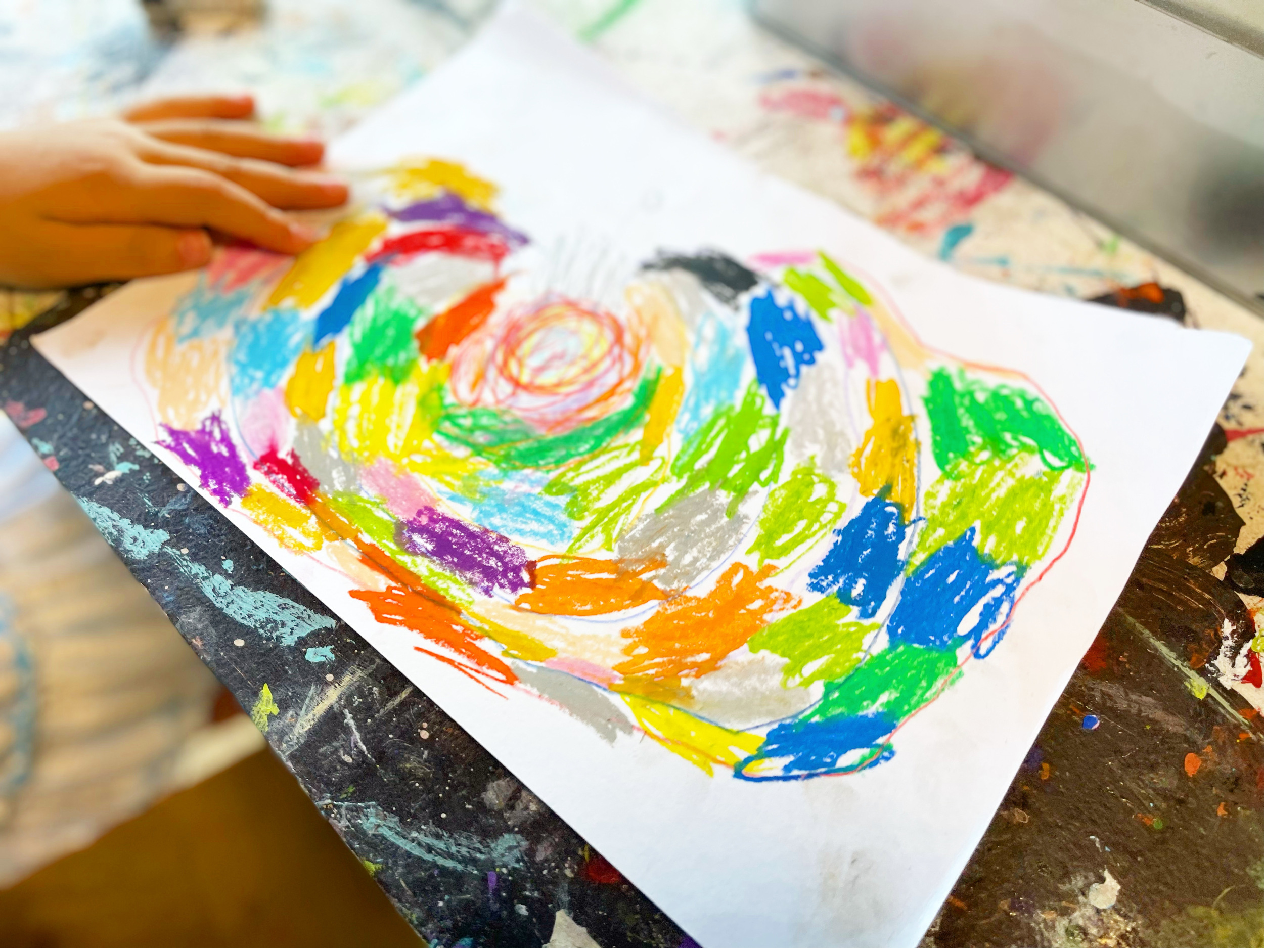 汚してもOK!窓や床や机、大きなキャンバスに思い切り絵を描いてもOK!作って壊してもOK!子どもたちの「やってみたい!」という気持ちを最大限に尊重し、可能性を広げるきっかけを提供します。大人数が苦手という方も安心して作品作りができるよう、生徒みんなで制作環境を調整していきます。